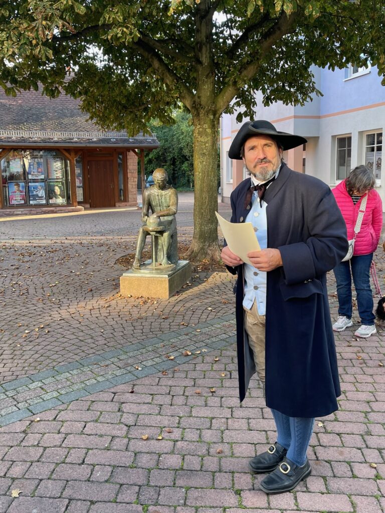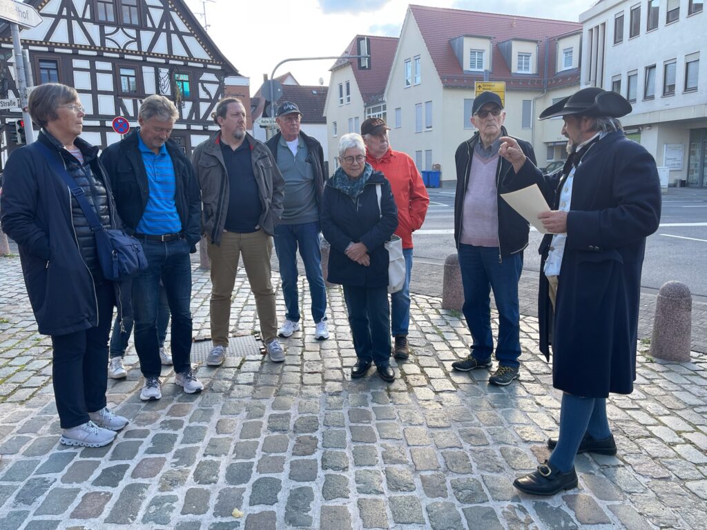 Ausgangspunkt der vom exzellenten Kenner des Orwischer Zentrums, Horst-Peter Knapp, angeführten Zeitreise bildete der „Dalles“, bevor Knapp in der Kirche S. Gallus die Geschichte des Moller-Bauwerks eindrücklich erklärte. Anschließend konnte sich die Gruppe im „Ebbelsche“ mit einem Glas Stöffche für den weiteren Rundgang stärken. Dass Urberachs Grenzen vor nicht allzu langer Zeit deutlich näher am Zentrum lagen, wurde vielen Besucher erst bewusst, als Knapp die „Pieta“ an der Kreuzgasse als damalige Stadtgrenze aufzeigte. Über die Töpferstraße und Traminer Straße, immer wieder begleitet von Knapps lustigen, interessanten und teilweise skurrilen Anekdoten zu Leben und Leuten im historischen Urberach, machte sich die Gruppe auf zu „Eis Venezia“. Hier erfuhren die Zeitreisenden beim Verzehr einer leckeren Kugel Eis, dass in diesem Haus die erste Apotheke von Urberach beheimatet war, welche auch lange Zeit als medizinischer Anlaufpunkt für alle Nachbarorte diente.