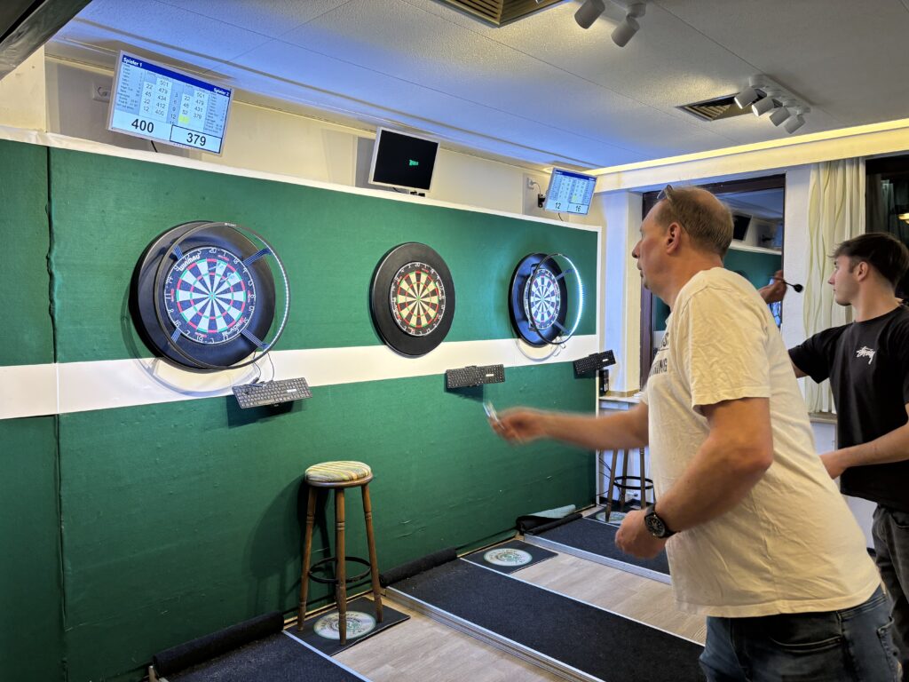 Die gemütliche Atmosphäre der Gaststätte bot den idealen Rahmen für einen Abend, an dem Spielspaß und Miteinander wichtiger waren als der sportliche Ehrgeiz. Skatspieler diskutierten lebhaft über das Reizen und die schlechten Karten, während es beim Dart immer wieder zu spontanen Jubelrufen kam, wenn ein Pfeil das Ziel getroffen oder halt eben nicht getroffen hatte. Auch die Rommé-Runden waren geprägt von guter Stimmung – besonders, wenn ein Spieler mit einem überraschenden Full-Hand-Finale die Gruppe staunen ließ.